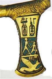 Bijl. Ahmose onderwerpt een Syrische strijder, boven een griffioen.